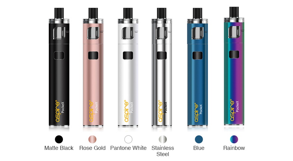 Aspire PockeX AIO starter kit is a fashionable all-in-one style device with 1500mAh battery capacity and 2ml e-juice capacity. Applied with 0.6ohm SS Nautilus X U-Tech coil, wider drip-tip and larger top-airflow, PockeX AIO brings superb flavour and dense vapour production. Top filling, leak-proof design and mini size make the PockeX a portable and daily using a vaping device. Matte Black, Rose Gold, Pantone White and Stainless Steel colours are available.